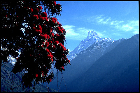 Rhododendrons in Anaperna Range, Mount Machhapuchhre, Modi Cholawinter Valley1995